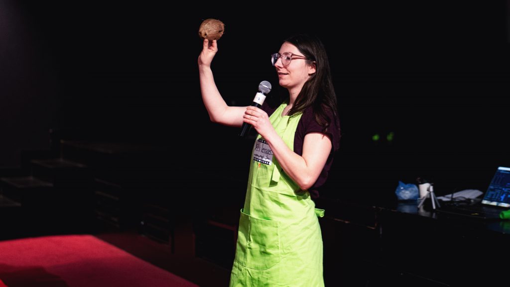 La présentation est construite comme une arborescence avec plusieurs fins possibles. Choisissez collectivement les étapes de la conférence au fur et à mesure des embranchements – selon les sujets que vous préférez aborder. Chaque décision conduit au visionnage d’un extrait de film et au jeu d’une partie d’un jeu vidéo précis !